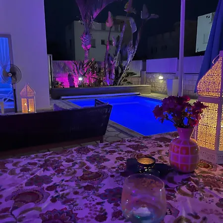 Villa Serenity Protaras s soukromým plaveckým bazénem s 3 ložnicemi je vybavena terasou s výhledem na bazén.